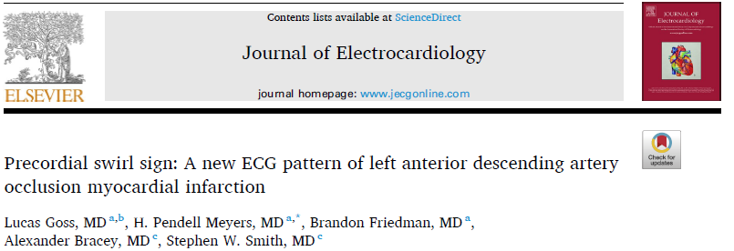 - Goss L, Meyers HP, Friedman B, Bracey A, Smith SW. Precordial swirl sign: A new ECG pattern of left anterior descending artery occlusion myocardial infarction. J Electrocardiol. 2025;91:153931.